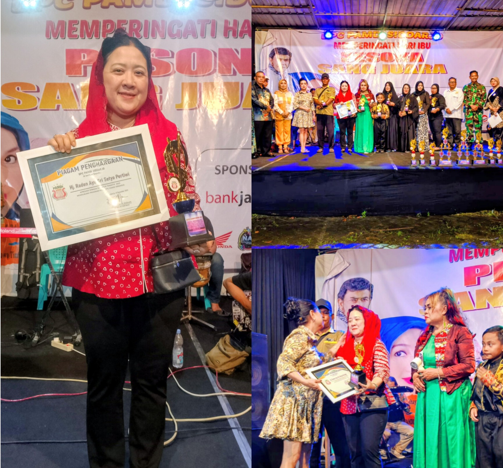 Sementara itu, PLT Ketua DPC PAMDI Kabupaten Sidoarjo, Ayunda Goba Maksum, menegaskan bahwa penghargaan Donatur Teraktif 2025 dan Ketua Organisasi Terbaik diberikan melalui pertimbangan objektif atas konsistensi, integritas, serta dampak kepemimpinan Hj. Raden Ayu Sri Setyo Pertiwi.