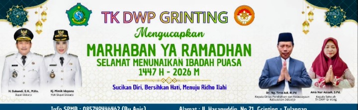 Dengan semangat Marhaban ya Ramadhan, TK DWP Grinting berkomitmen menjadikan bulan suci sebagai ruang pembelajaran yang penuh makna. Di balik keceriaan anak-anak yang belajar dan bermain, terselip harapan besar agar mereka tumbuh menjadi generasi yang sholeh dan sholehah, generasi yang kelak membawa kebaikan bagi keluarga, masyarakat, bangsa, dan agama.