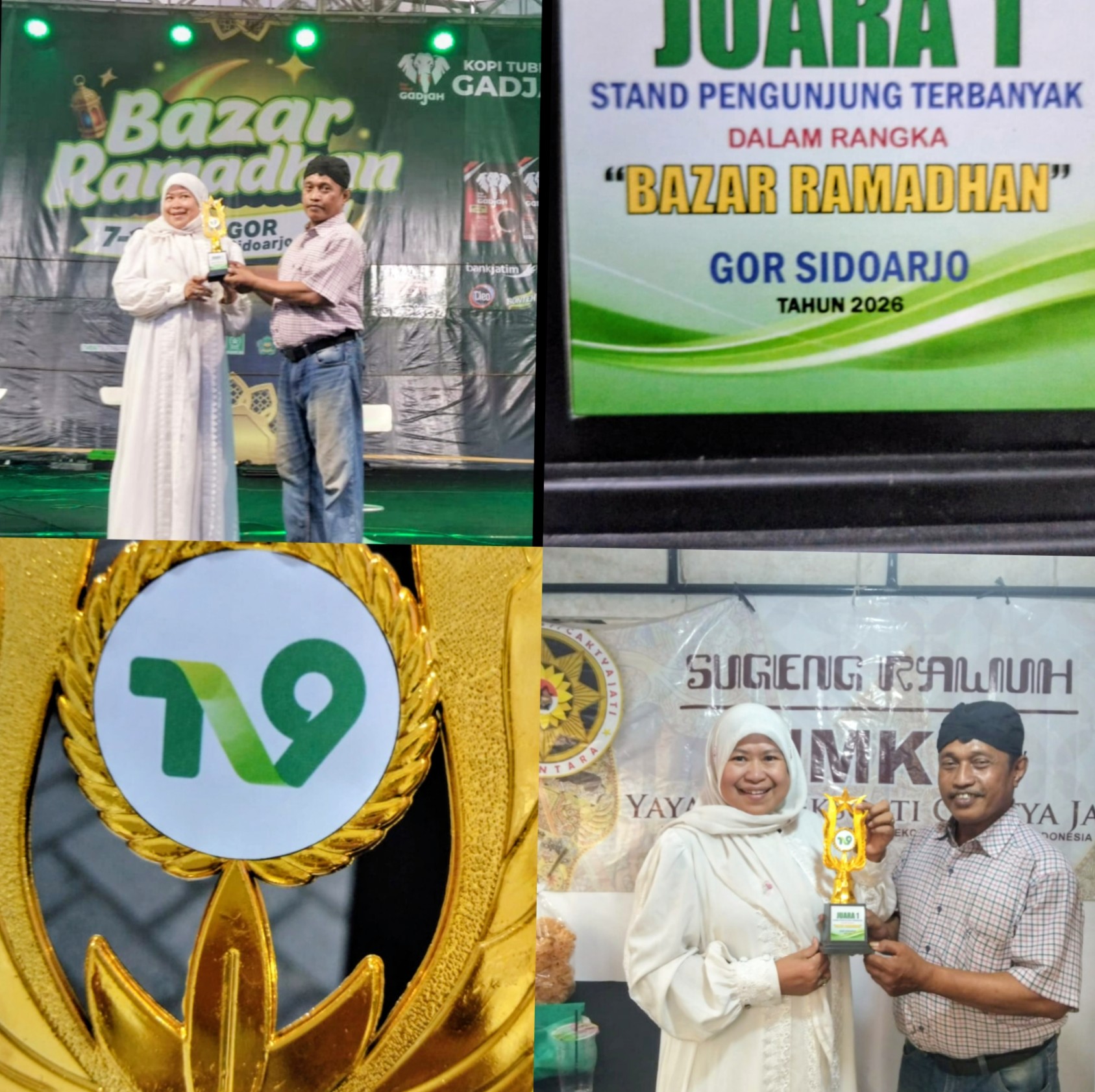 Sidoarjo//Pusatberita.i.news.Site. Prestasi membanggakan kembali diraih oleh para pelaku Usaha Mikro Kecil dan Menengah (UMKM) binaan Yayasan Reksoati Caktya Jati Kabupaten Sidoarjo. Dalam gelaran Bazar Ramadan yang berlangsung meriah di GOR Sidoarjo, stand UMKM binaan yayasan tersebut berhasil meraih Juara 1 kategori Stand dengan Pengunjung Terbanyak, sebuah penghargaan yang diselenggarakan oleh TV9 sebagai bentuk apresiasi terhadap stand yang paling diminati masyarakat selama kegiatan berlangsung.