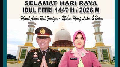 Kotawaringin Barat pusatberita iNews – Dalam rangka menyambut Hari Raya Idul Fitri 1447 H/2026 M, Kapolsek Pangkalan Banteng IPTU Agung Sugiarto, S.H., M.H., bersama Ketua Bhayangkari Ranting Pangkalan Banteng Ny. Woro Iswahyuni Agung menyampaikan ucapan selamat kepada seluruh masyarakat. Jum’at (20/03/2026).