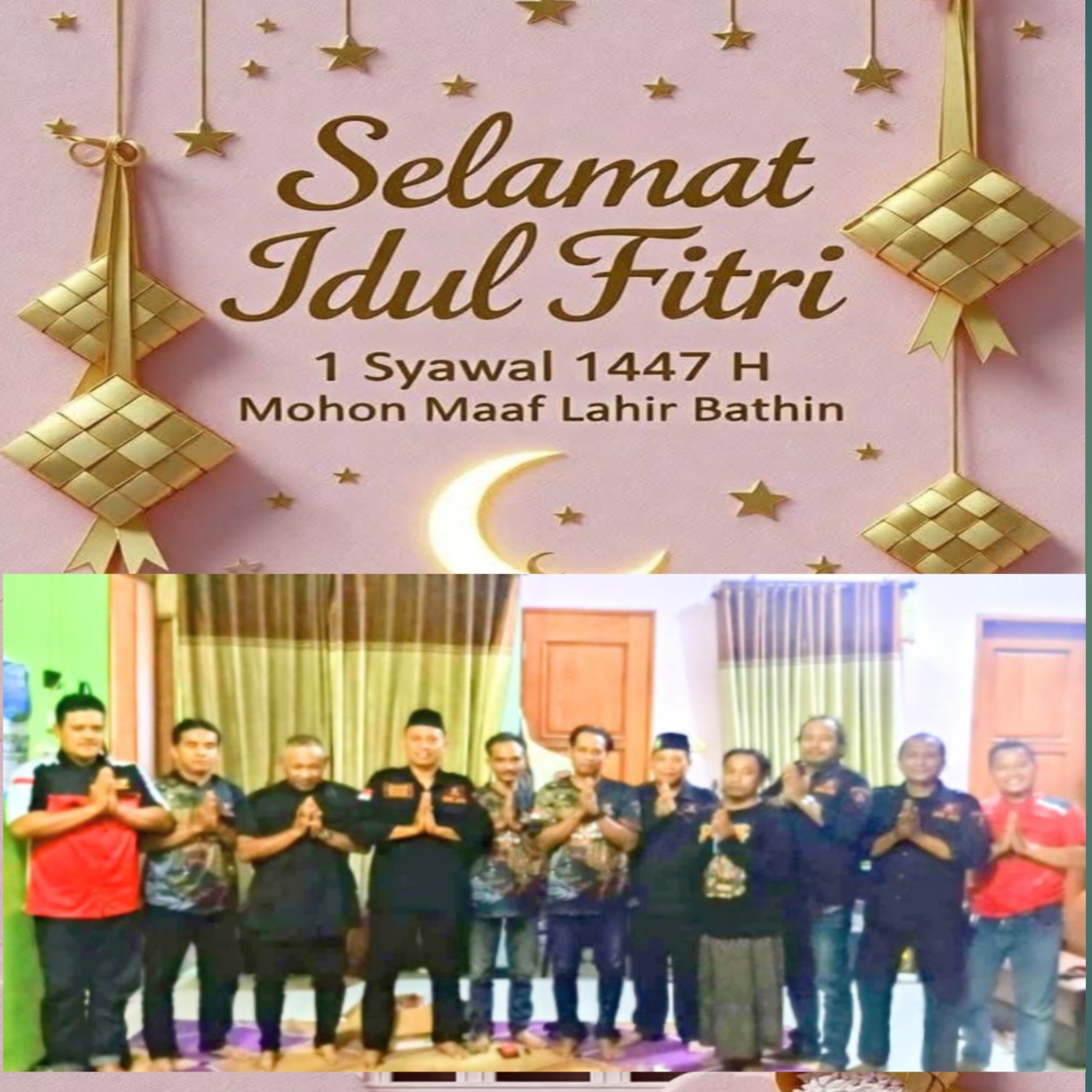 SIDOARJO//Pusatberita.i.news.SiteSuasana hangat dan penuh kebersamaan menyelimuti perayaan Hari Raya Idul Fitri 1447 Hijriyah/2026 Masehi. Di tengah momen suci yang sarat makna tersebut, Ketua PAC GRIB JAYA Kecamatan Tulangan, Kabupaten Sidoarjo, Agus Subandriyo, ST, menyampaikan ucapan selamat sekaligus pesan mendalam kepada seluruh masyarakat.
