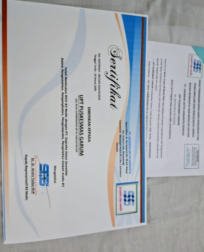 Dalam suasana penuh kehangatan dan semangat kolaborasi, dilakukan penandatanganan nota kesepahaman (MoU) antara pihak Puskesmas Garum dengan PT. Sagraha Satya Sawahita, perusahaan yang dipimpin langsung oleh Dr. Andre Yulius. Kerja sama ini menjadi tonggak penting dalam upaya menciptakan sistem pengelolaan limbah medis yang aman, profesional, dan berkelanjutan.