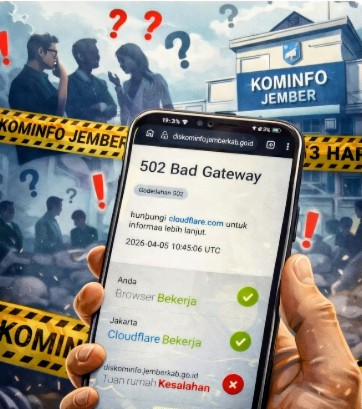 JEMBER//Pusatberita.i.news.Site.          Tiga hari bukan waktu yang singkat dalam dunia digital. Namun itulah yang terjadi pada website resmi milik Dinas Komunikasi dan Informatika Kabupaten Jember yang dilaporkan tidak dapat diakses selama berhari-hari. Peristiwa ini bukan sekadar gangguan teknis, melainkan menjadi sorotan serius yang mengarah pada dugaan lemahnya tata kelola sistem informasi di lingkungan pemerintah daerah.